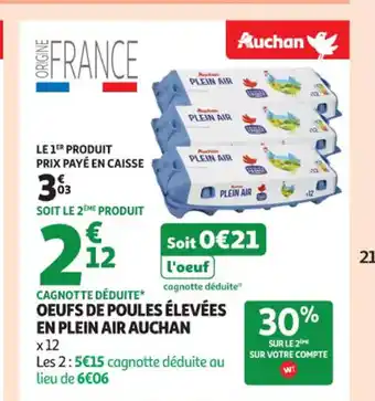 AUCHAN Oeufs de poules élevées en plein air offres et promotions en ligne chez Auchan Supermarché