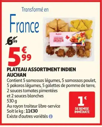 En plus de l'offre AUCHAN Plateau assortiment indien, Auchan Supermarché propose une large gamme de produits. Consultez le Catalogue Auchan Supermarché hebdomadaire pour découvrir les meilleures offres et promotions. En plus de AUCHAN Plateau assortiment indien, il y a aussi : Plateau assortiment indien, Plateau assortiment indien & AUCHAN assortiment indien.