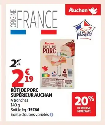 Offre AUCHAN Rôti de porc supérieur chez Auchan Supermarché