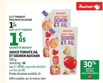 Actuellement en offre chez Auchan Supermarché : AUCHAN Sauce tomate ail et oignon ✅ Valable du 2-01 au 10-01.