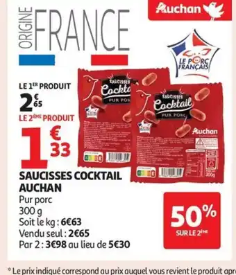 Actuellement en offre chez Auchan Supermarché : AUCHAN Saucisses cocktail ✅ Valable du 27-01 au 7-02.