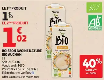 Boisson avoine nature bio auchan : offres et promos Auchan Supermarché à découvrir