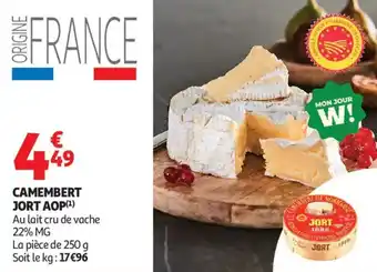 Actuellement en offre chez Auchan Supermarché : Camembert jort aop ✅ Valable du 10-02 au 21-02.