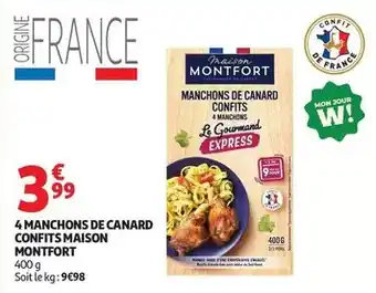 Actuellement en offre chez Auchan Supermarché : Canard - 4 manchons de confits ✅ Valable du 20-01 au 24-01.
