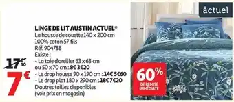 Actuellement en offre chez Auchan Supermarché : Cap actuel - linge de lit austin ✅ Valable du 26-12 au 31-12.