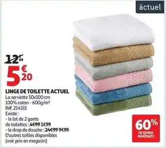 Actuellement en offre chez Auchan Supermarché : Cap actuel - linge de toilette ✅ Valable du 2-01 au 10-01.