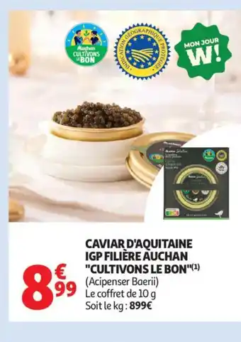 Actuellement en offre chez Auchan Supermarché : Caviar d'aquitaine igp filière auchan cultivons le bon ✅ Valable du 24-02 au 7-03.