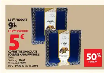 Actuellement en offre chez Auchan Supermarché : Coffret de chocolats fourrés kadaif witor's ✅ Valable du 3-03 au 21-03.