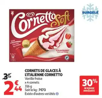 Offre Cornets de glaces à l'italienne cornetto chez Auchan Supermarché