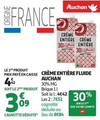 Offre Crème entière fluide auchan chez Auchan Supermarché