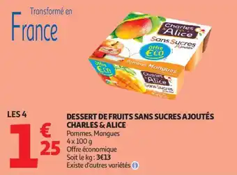 Le prix de l'offre Dessert de fruits sans sucres ajoutés charles & alice se trouve également en haut de la page, ainsi que la date à laquelle l'offre est disponible. Vous pouvez également vérifier les prix dans le Catalogue Auchan Supermarché actuel ou sur le site Internet de Auchan Supermarché. Les offres vous permettent d'acheter les produits Auchan Supermarché au prix le plus bas.