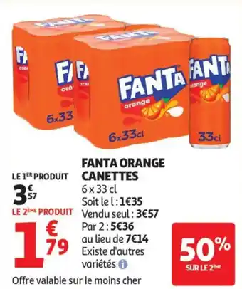 Actuellement en offre chez Auchan Supermarché : FANTA Orange canettes ✅ Valable du 2-01 au 10-01.