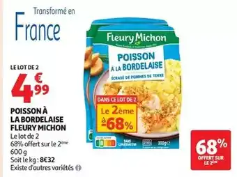 Actuellement en offre chez Auchan Supermarché : Fleury michon - poisson à la bordelaise ✅ Valable du 26-12 au 31-12.