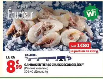 Offre Gambas entières crues décongelées chez Auchan Supermarché