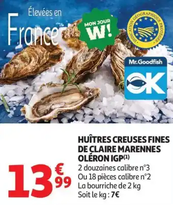 En plus de l'offre Huîtres creuses fines de claire marennes oléron igp, Auchan Supermarché propose une large gamme de produits. Consultez le Catalogue Auchan Supermarché hebdomadaire pour découvrir les meilleures offres et promotions. En plus de Huîtres creuses fines de claire marennes oléron igp, il y a aussi : Huîtres creuses fines de claire marennes oléron igp, Huitres marennes oleron fines de claire igp & Huîtres creuses fines de claires N° 3 (Marennes Oléron).