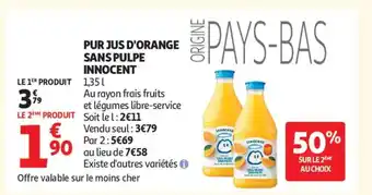 Actuellement en offre chez Auchan Supermarché : INNOCENT Pur jus d'orange sans pulpe ✅ Valable du 10-03 au 21-03.