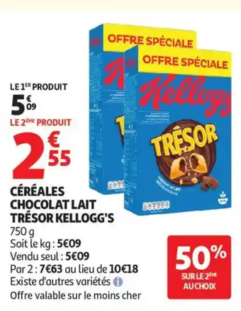 Actuellement en offre chez Auchan Supermarché : KELLOGG'S Céréales chocolat lait trésor ✅ Valable du 2-01 au 10-01.