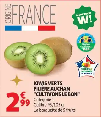 Actuellement en offre chez Auchan Supermarché : Kiwis verts filière auchan cultivons le bon ✅ Valable du 20-12 au 24-12.