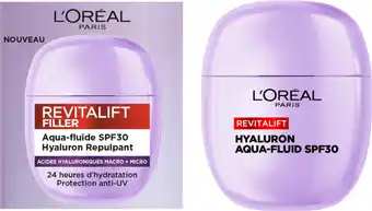 Actuellement en offre chez Auchan Supermarché : L oreal revitalift filler daily aqua l oreal paris ✅ Valable du 10-03 au 22-03.