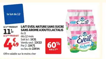 Offre Lait eveil nature sans sucre sans arome ajoute lactalis chez Auchan Supermarché