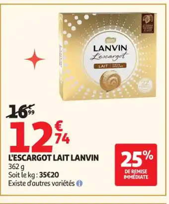 Actuellement en offre chez Auchan Supermarché : LANVIN L'escargot lait ✅ Valable du 16-12 au 24-12.
