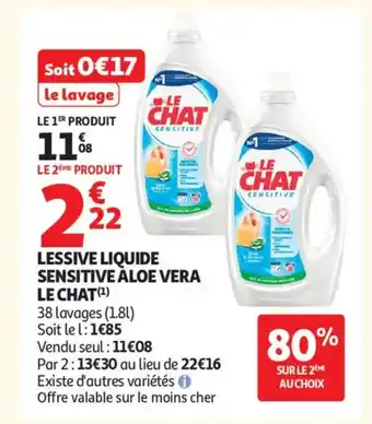 Actuellement en offre chez Auchan Supermarché : LE CHAT Lessive liquide sensitive aloe vera ✅ Valable du 24-02 au 7-03.