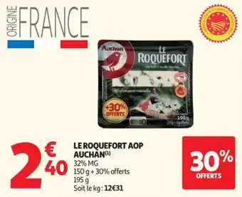 Actuellement en offre chez Auchan Supermarché : Le roquefort aop auchan ✅ Valable du 10-02 au 21-02.