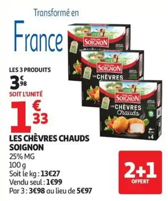 Actuellement en offre chez Auchan Supermarché : Les chèvres chauds soignon ✅ Valable du 27-01 au 7-02.