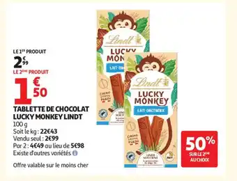 LINDT Tablette de chocolat lucky monkey : offres et promos Auchan Supermarché à découvrir