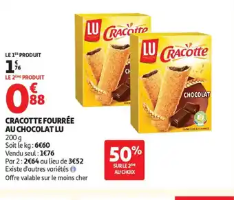 Actuellement en offre chez Auchan Supermarché : LU Cracotte fourrée au chocolat ✅ Valable du 2-01 au 10-01.