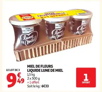 Actuellement en offre chez Auchan Supermarché : LUNE DE MIEL Miel de fleurs liquide ✅ Valable du 3-03 au 21-03.