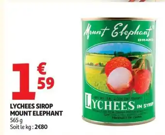 Actuellement en offre chez Auchan Supermarché : Lychees sirop mount elephant ✅ Valable du 27-01 au 7-02.