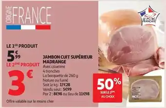 Actuellement en offre chez Auchan Supermarché : Madrange - jambon cuit supérieur ✅ Valable du 6-01 au 10-01.