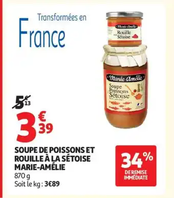 Actuellement en offre chez Auchan Supermarché : MARIE-AMÉLIE Soupe de poissons et rouille à la sétoise ✅ Valable du 3-03 au 7-03.
