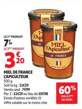 Actuellement en offre chez Auchan Supermarché : Miel de france l'apiculteur ✅ Valable du 20-01 au 24-01.