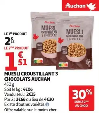 Muesli croustillant 3 chocolats auchan : offres et promos Auchan Supermarché à découvrir