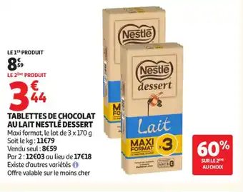 Actuellement en offre chez Auchan Supermarché : NESTLÉ DESSERT Tablettes de chocolat au lait ✅ Valable du 3-03 au 21-03.