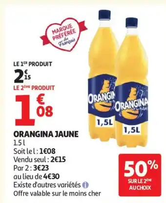 Actuellement en offre chez Auchan Supermarché : ORANGINA Jaune ✅ Valable du 2-01 au 10-01.