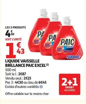 PAIC EXCEL Liquide vaisselle brillance : offres et promos Auchan Supermarché à découvrir