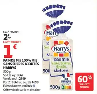 Offre Pain de mie 100% mię sans sucres ajoutés harrys chez Auchan Supermarché