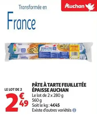 Actuellement en offre chez Auchan Supermarché : Pâte à tarte feuilletée épaisse auchan ✅ Valable du 27-01 au 7-02.