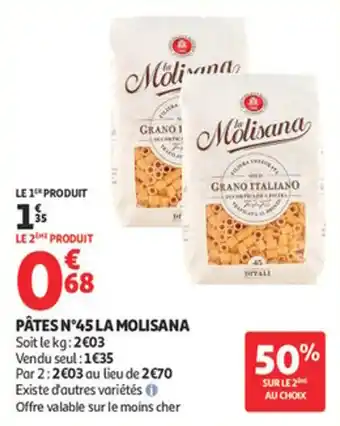 Actuellement en offre chez Auchan Supermarché : Pâtes n°45 la molisana ✅ Valable du 13-01 au 24-01.