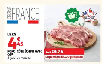Actuellement en offre chez Auchan Supermarché : Porc: côte échine avec os ✅ Valable du 14-04 au 18-04.