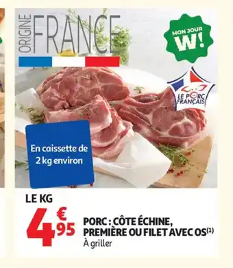 Actuellement en offre chez Auchan Supermarché : Porc côte échine. première ou filet avec os ✅ Valable du 2-01 au 10-01.