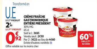 PRÉSIDENT Crème fraîche gastronomique entière offres et promotions en ligne chez Auchan Supermarché