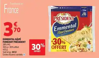 Actuellement en offre chez Auchan Supermarché : Président - emmental rape fondant ✅ Valable du 26-12 au 31-12.