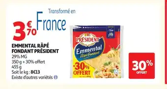 Offre PRÉSIDENT Emmental râpé fondant chez Auchan Supermarché
