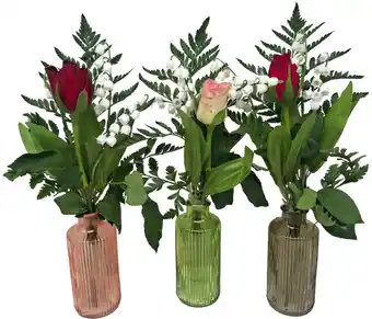 Sans marque 2 brins de muguet + 1 rose dans un vase en verre offres et promotions en ligne chez Auchan Supermarché