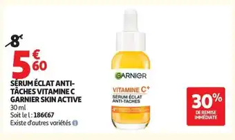 Offre Sérum éclat anti- tâches vitamine c garnier skin active chez Auchan Supermarché
