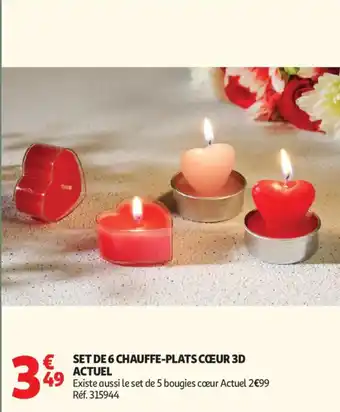 Actuellement en offre chez Auchan Supermarché : Set de 6 chauffe plats coeur 3d actuel ✅ Valable du 10-02 au 21-02.